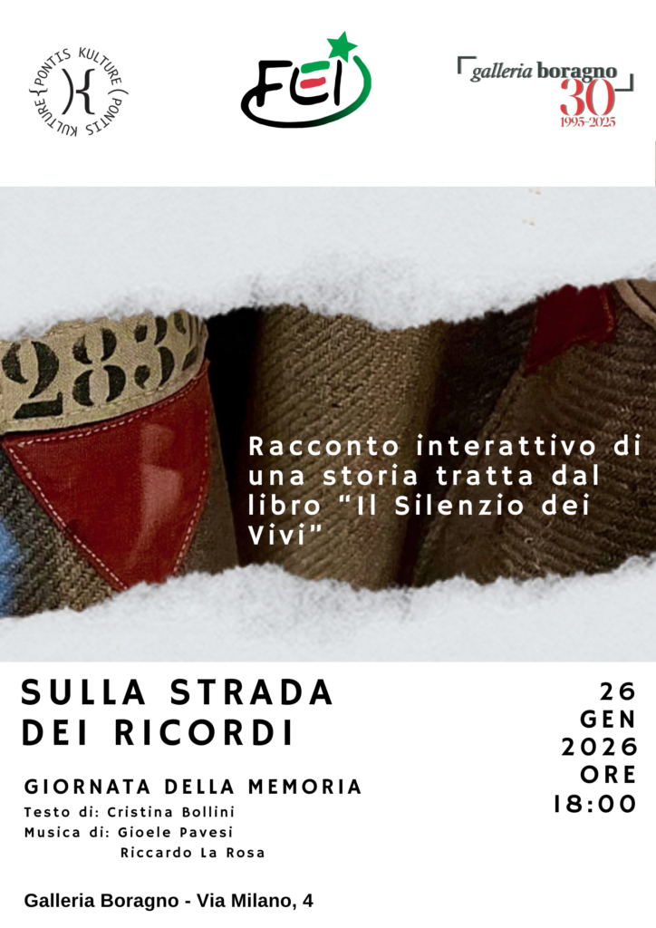 In occasione della Giornata della Memoria, Pontis Kulture vi invita all’evento “Sulla Strada dei Ricordi”; un racconto interattivo tratto dal testo “Il Silenzio dei Vivi” con musiche dal vivo prodotte da Gioele Pavesi e Riccardo La Rosa.